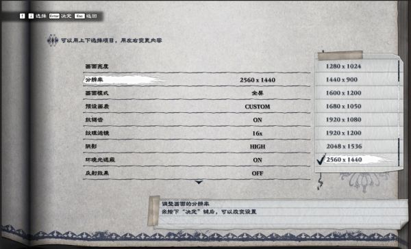 然后进游戏选择16:9的分辨率。比如1920x1080或者2560x1440.