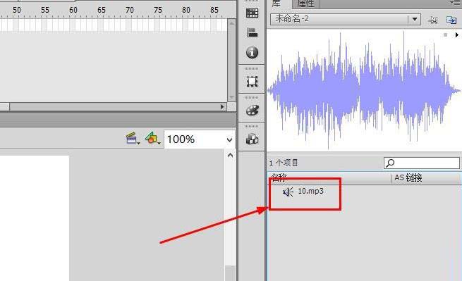 1、这里用的是Flash CS6,打开软件,将声音文件放到库里面。
