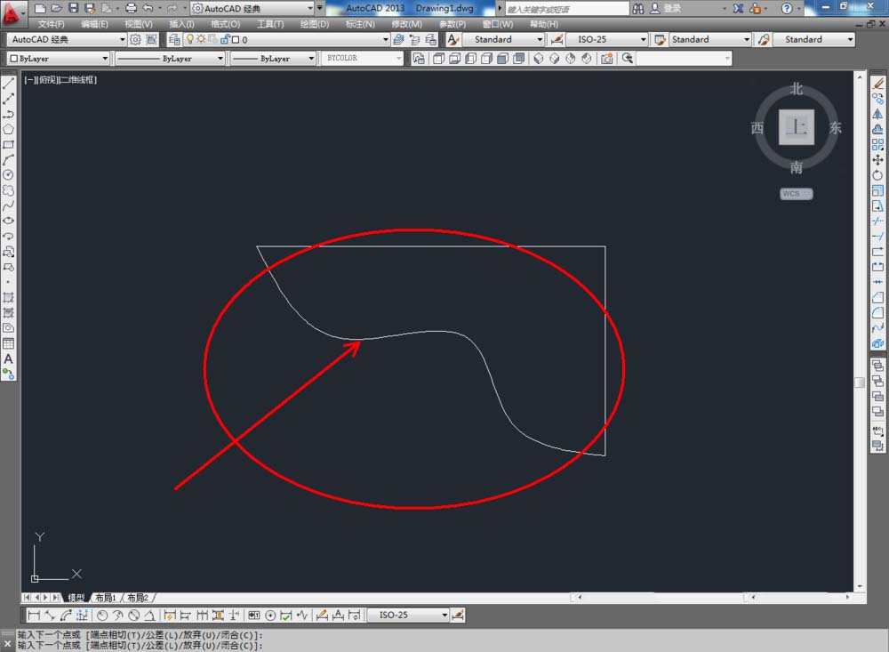 2、点击【样条曲线】工具,绘制出连接横纵两线的曲线,点击曲线上的点,对曲线的弯曲幅度进行调整;
